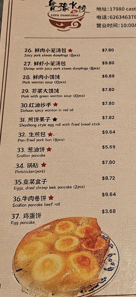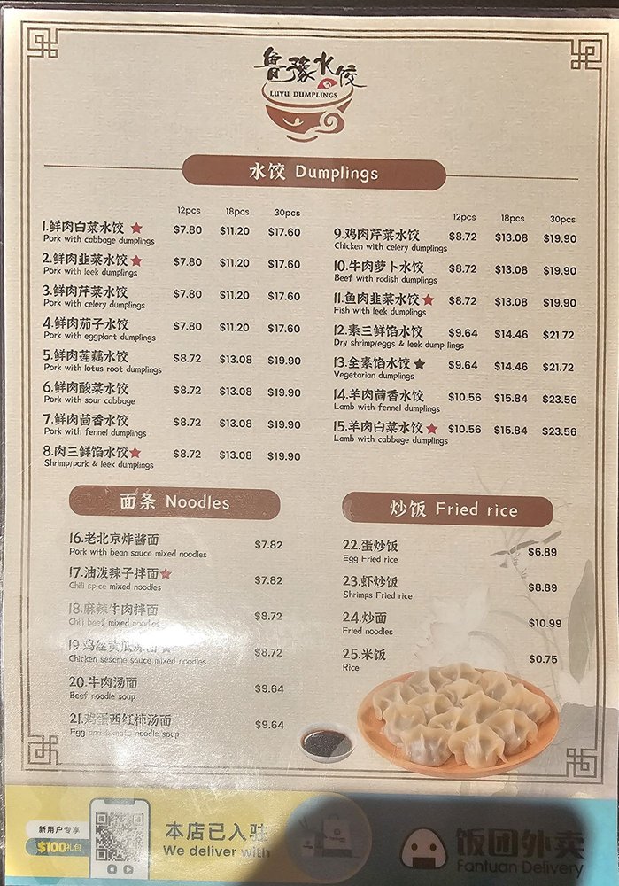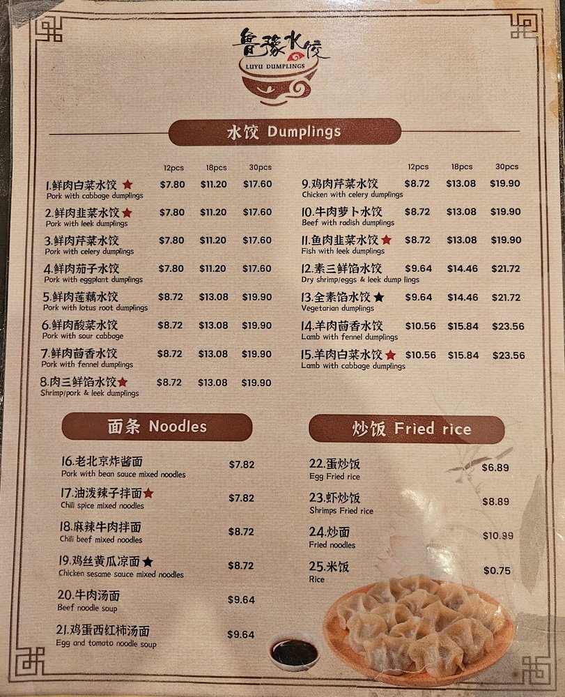 Luyu Dumplings Menu
